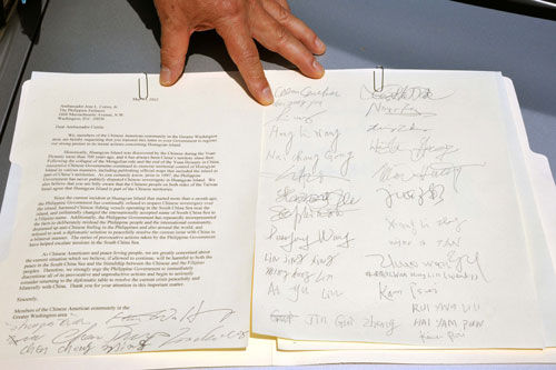 美国华人致菲律宾驻美国大使抗议信及签名。人民网记者 温宪 摄