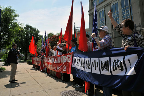 在此之前,一个名为“华盛顿华人捍卫南海主权行动委员会”发出5月13日在菲律宾驻美国大使馆开展示威活动倡议。倡议说,“我们虽然与祖国远隔万水千山,但在我们的身上依然奔流着中华民族的热血,祖国的每一寸土地都充满深深的爱。当祖国领土遭受外来侵犯的时候,凡我中华儿女无论身处何地,皆应挺身而出。请组织贵社团会员,请携上您的家人、朋友和同学积极参与华盛顿华人捍卫南海主权行动,到菲律宾驻美国大使馆前示威,以表达海外华人捍卫南海主权的决心,以实际行动捍卫祖国主权的尊严!”