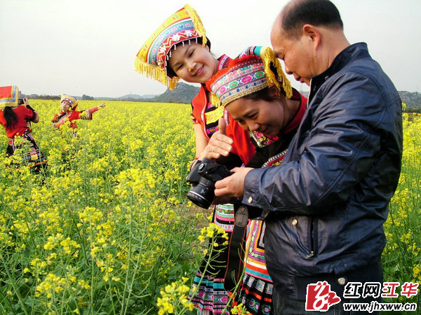 江华新闻网讯(记者 杨丁香 通讯员 全梦瑶)3月4日下午,沱江镇瑶都大道两旁的油菜花田里,两个瑶家阿妹正在查看拍照效果。阳春三月,春暖花开,江华瑶乡大地8万亩油菜花竞相开放,妖娆多姿,吸引了众多瑶家阿哥阿妹走出家门,与春风共舞,跟油菜花斗艳。