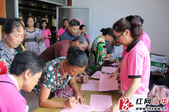 图为:瑶族同胞们步入“幸福家庭”公益巡讲登记现场。唐建国 摄