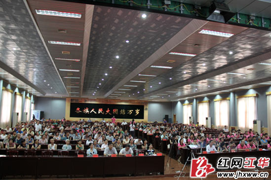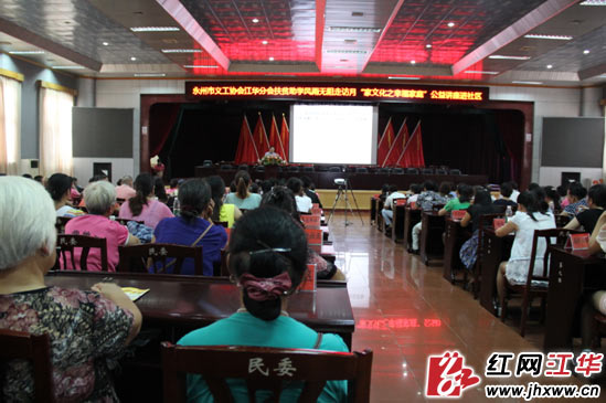 江华新闻网讯(通讯员 唐建国)8月10日下午,立秋刚过,八月的瑶山处处洋溢弥漫着幸福、和谐的融融氛围。县民族科技培训中心室里座无虚席,来自全县各社区近千余名群众聚集在这里,认真聆听“学习传统文化,帮助家庭幸福——家文化进社区”为主题的专题讲座。此次活动由江华瑶族自治县义工联合会、百姓通谱网络科技有限公司、湖南省湖湘文化交流协会主办。