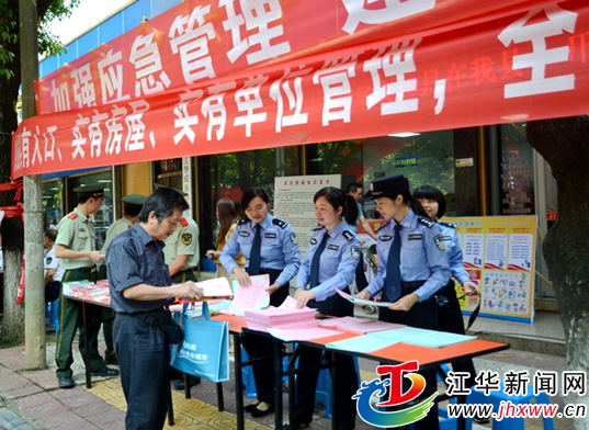 江华新闻网讯(通讯员 刘航宇)为做好国家第八个“防灾减灾日”宣传活动,进一步增强全社会公共安全意识,广泛宣传和普及灾害、防灾减灾、应急避险等知识,提高群众的防灾减灾意识和应对突发事件的能力。5月12日,江华县组织县公安、县教育、县人防、县消防、县民政、县卫计委、沱江镇四社区等单位,以街头宣传、学校演练、社区派单等方式进行“防灾减灾”平安创建活动。