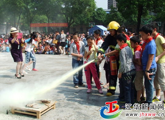 在县第二小学校园里,阳华社区与学校共同开展了“平安学校”防灾减灾宣传及综合演练活动。县应急办、教育局、民政局、人防办、消防大队等七个单位为师生们宣传了防灾减灾知识,并对火灾的扑救、控制、火场协调指挥、物资转移等进行了演练,增强了师生们面对灾害的自救互救能力。