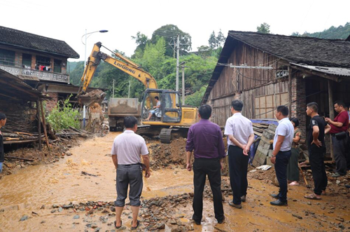 沿着蜿蜒曲折的山路,罗建华一行来到了湘江乡,听取了相关情况汇报。在此次洪灾过程中,造成687人受灾,紧急转移受灾群众10人,房屋严重受损4间,一般受损15间,房屋进水47户,房前屋后塌方63处1785方,加上农业以及道路、通讯等被损毁的基础设施,直接经济损失达987万元。中央冲村在此次洪灾中电力设施严重受损,村中一居民房屋被山体滑坡冲击导致严重受损,仍有水流顺着滑坡体流入屋内,冲下门前的溪流之中,所幸没有造成人员伤亡。罗建华认真察看了损毁的相关情况,对乡镇和村党员干部第一时间带领组织群众抗灾自救,及时恢复受灾群众基本生产生活给予了高度肯定。